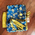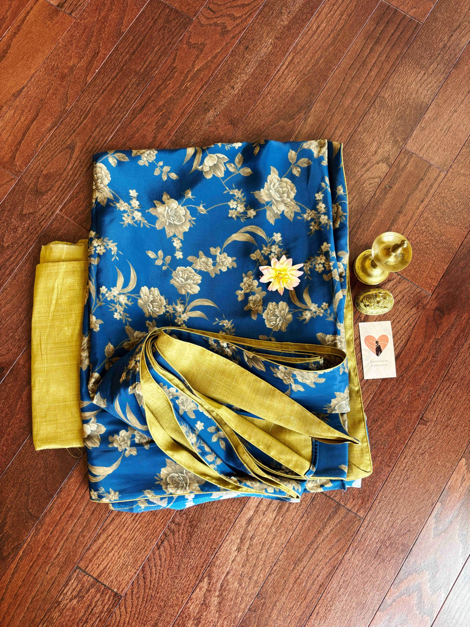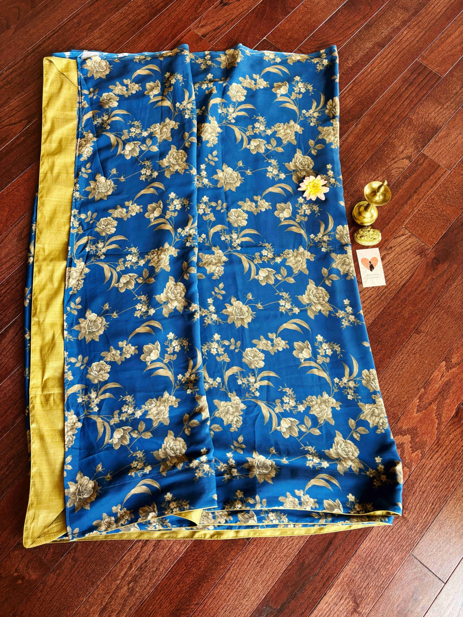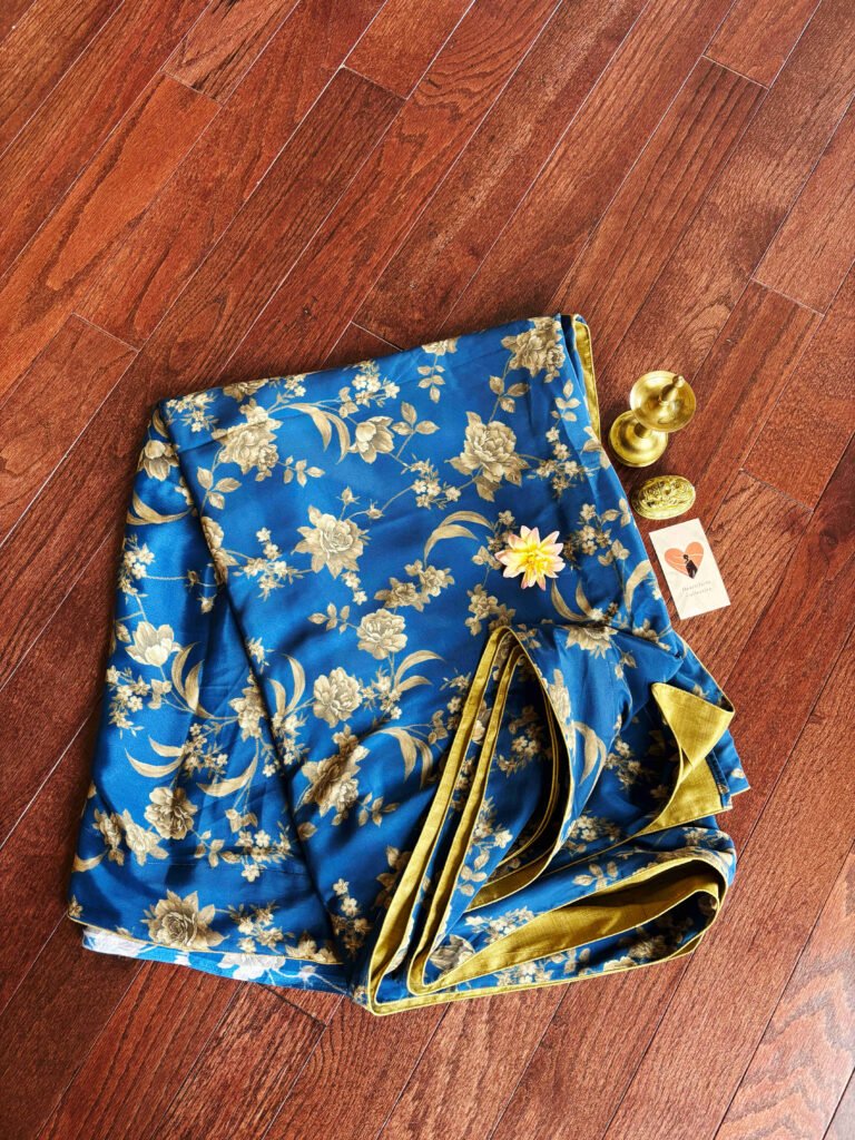 Lovely floral crepe silk saree with backfusing done in a contrasting gold and beige. This particular saree is made exceptionally well and wins the high praise of being one of our director’s absolute favourite of the entire Heartifacts Collection.